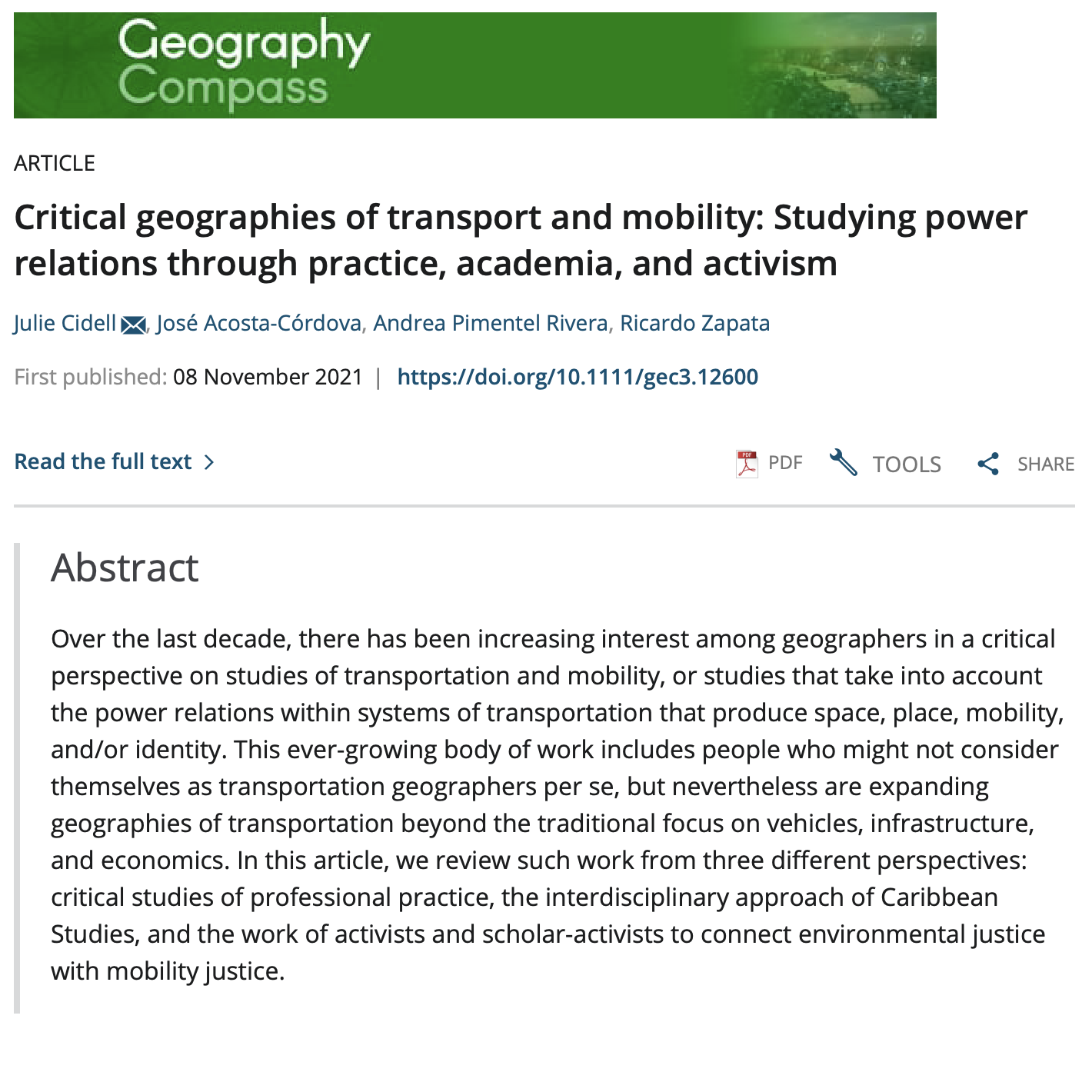 A paper I’m honored to be a part of with my advisor Julie Cidell and my co-advisees José Acosta-Córdova and Andrea Pimentel Rivera