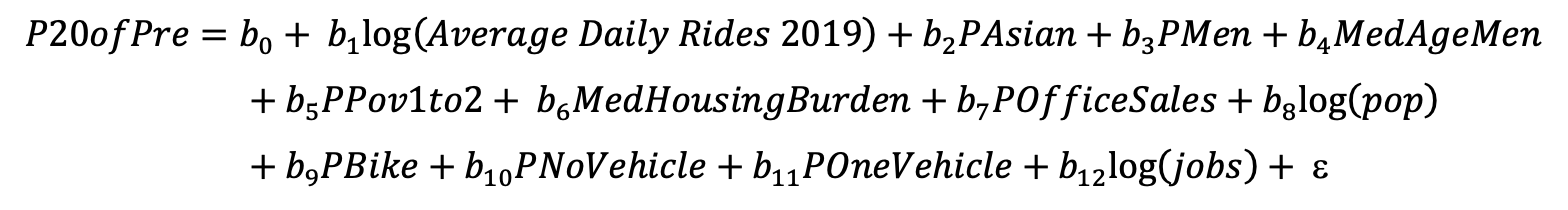Understanding the relationship between socioeconomic status and rail transit, it would be fruitful to ask how the magnitude of these known determinants of ridership varied across the city during the Summer of 2020, at the height pandemic mobility restrictions. The pandemic presents an opportunity to explore known relationships in a new context and add richness to our understanding of transit justice, COVID times or not.